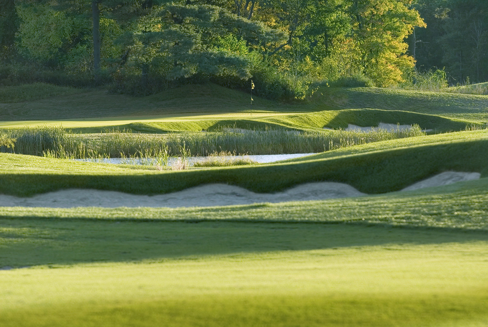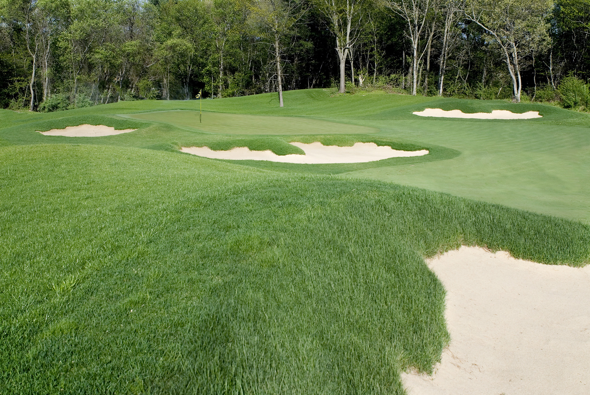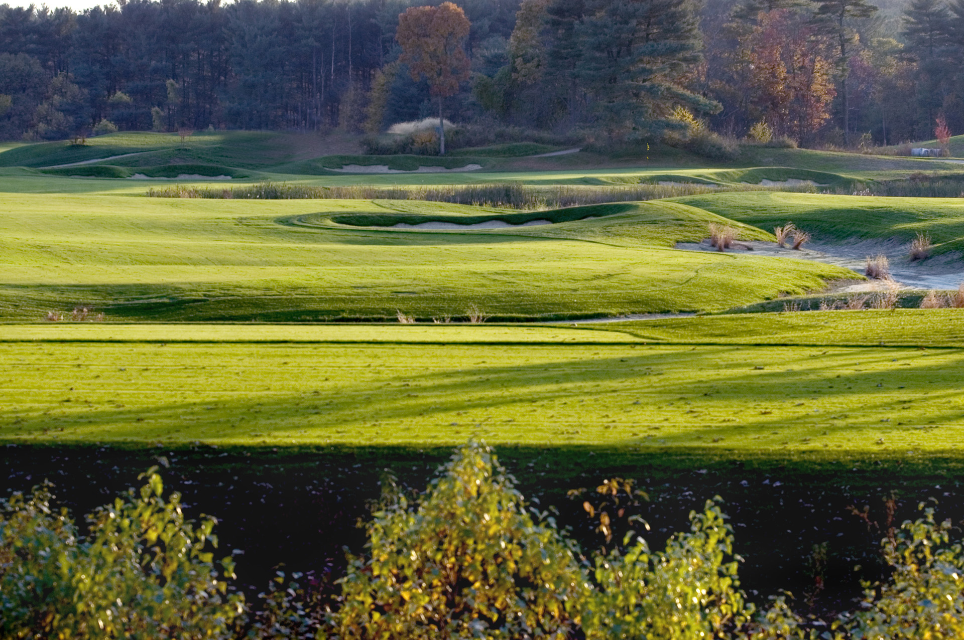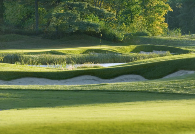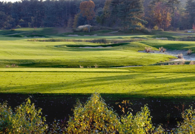During this project, responsibility for all facets of development included initial site walk and suitability report in 1998, to the grand opening of all 18 holes in 2007. A majority of the site consisted of pine forested rolling terrain. The other portion contained a treeless, windswept piggery. The soils were ideal, consisting of well drained material that eased drainage concerns and provided the base for exceptionally firm and fast playing conditions. The course was designed with this foundation in mind as several holes emphasize playing the ball on the ground. This is especially true on the back nine holes. The 17th hole was named one of the most “Brutally Beautiful” by Jon Deere in a 2009 national competition.
