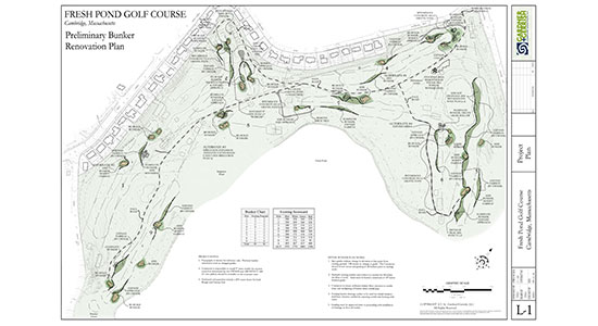 The work focused on re-building the bunkers into a more maintenance friendly style, but with an eye catching character. Fresh Pond was originally designed in the early 1930’s by Walter Johnson, an associate of the renowned golden age architect, Donald Ross. 15 Bunkers were re-built, 9 eliminated, and 10 bunkers were added. As well as the alterations to the bunkers, much needed drainage work on the 5th hole and expansion to the 6th green was included in the scope. The course will now be more playable and less expensive to maintain going forward.