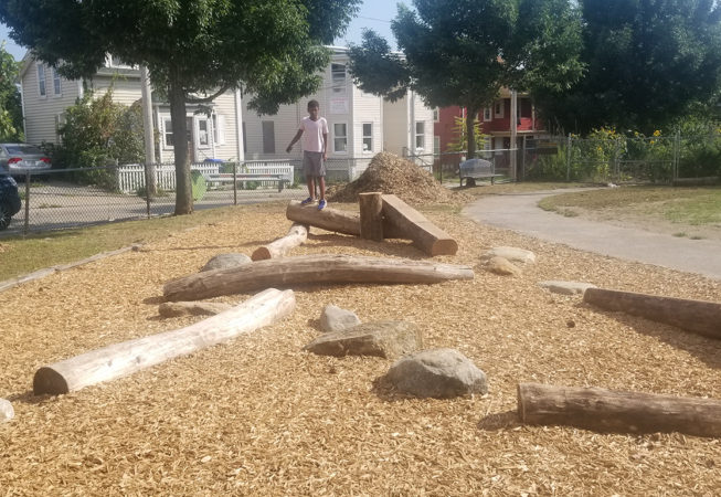 Joslin Park playground is a portion of a multiple phase park improvements project. G+G developed a renovation plan for the playground following multiple community meetings and input from the Parks Department. Creating natural play elements that allow children 5-12 to challenge their skill and determination while meeting playground safety guidelines was the goal. An outdoor classroom, located beneath existing shade trees, will be used by the adjacent elementary school.