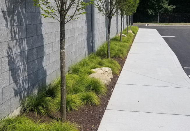 G+G was very excited to work with the staff at Mystic Aquarium on the new Milne Center for Ocean Science and Conservation. This $8 million building will link to the renovated Wiederhold Veterinary Care Facility and include new classrooms, an auditorium and animal quarantine facility. G+G designed a rear courtyard/event space with local stone boulder field, native plantings screening views and defining the space, plus a central focal point for the Mystic Whale sculpture. Front entry plantings and car park lighting highlighted the building façade. Overall scope include lighting, walks, custom cedar fence (meeting aquarium guidelines), low maintenance plantings, sports quality turf and irrigation. Opened spring 2019.