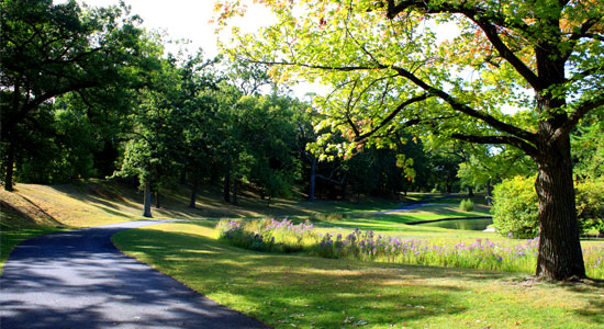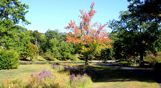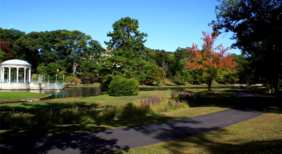 As part of water quality improvement goals at Rogers Williams Park, Roosevelt Lake Recreational Path was designed to mitigate negative effects of stormwater run-off and water fowl control, plus provide an amenity to park users. 1,000 linear feet of paved boulevard was removed and areas re-graded to create vegetated swales and rain gardens. A twelve foot wide pedestrian path connects the Japanese Garden and Roosevelt Lake to the larger park pedestrian circulation. Native plantings include large areas of meadow and lake buffer species in addition to ornamental trees, continuing the Roger Williams Park arboretum tradition. Construction was completed in the spring of 2013.