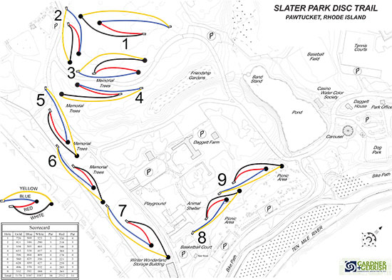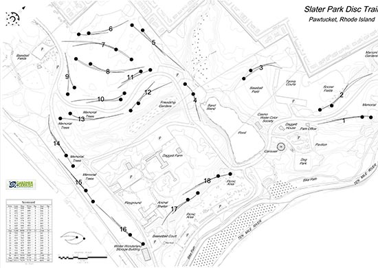 With disc golf popularity rising, the City of Pawtucket took the initiative to include a course in historic Slater Park. Gardner + Gerrish worked with the City to design a course that makes use of some under developed existing trail network. We routed an 18 hole course with two sets of tees and two sets of baskets providing four different courses. Much like golf, the shortest course is appropriate for beginners, while the longest course will be the longest in New England and is proposed for use for tournaments as a professional disc tour course.